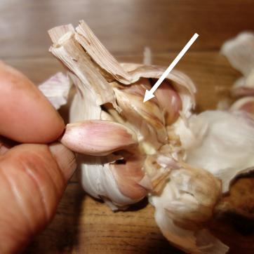 Lorsque vous décortiquez l’ail pour séparer les caïeux, gardez ceux du pourtour pour produire des têtes d’ail qui arriveront à maturité et gardez ceux du centre pour produire l’aillet.