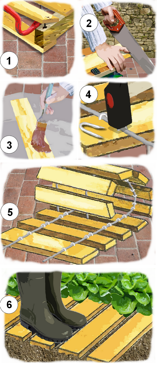La fabrication d'une allée déroulante en bois de palette permet d'éviter de patauger dans la terre humide et grasse du potager en hiver.