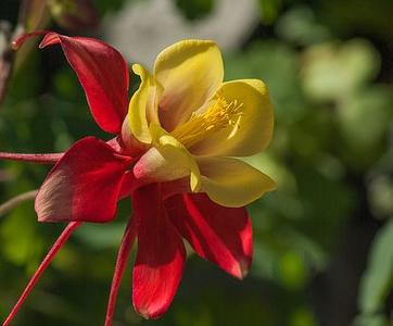 Aquilegia skinneri : ses feuilles sont remarquables par leurs segments lobés et dentés, les fleurs, aux sépales verts, sont pendantes, les pétales sont verts marqués de nuances d’orangé, de cet ensemble très coloré jaillit un éperon rouge écarlate, la floraison a lieu entre mai et juillet.