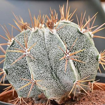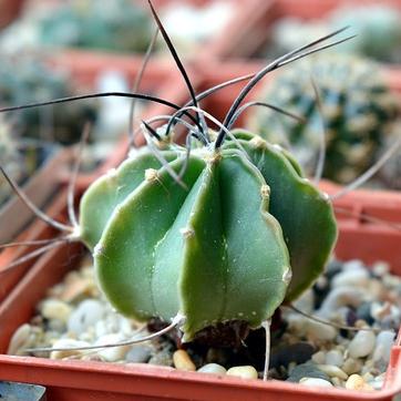 Cette espèce donne les fleurs les plus spectaculaires (7 cm de long) et la forme globulaire comporte huit côtes très nettes, comporte souvent de très nombreuses pustules blanches et beaucoup d’aiguillons brunâtres spectaculairement recourbés, qui peuvent faire jusqu’à 8-Ì 0 cm de long.