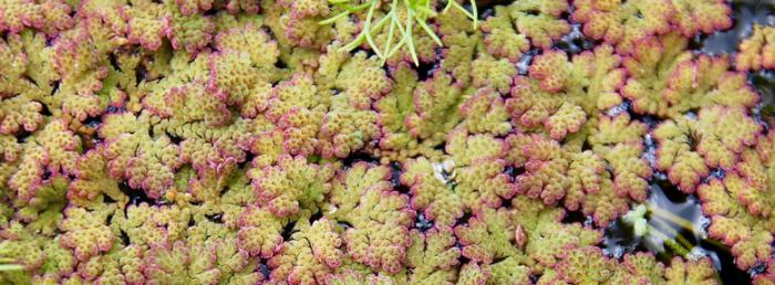 Voilà une plante aquatique bien singulière, l’azolla filiculoïdes (caroliniana), une superbe petite fougère qui si elle trouve des conditions favorables envahira votre mare ou bassin.