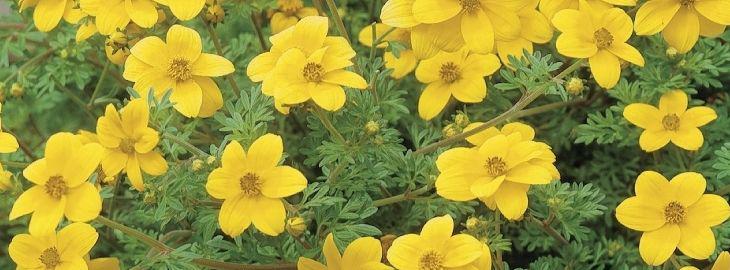 Le bidens appelé aussi bidens ferulifolia, avec ses nombreuses petites fleurs étoilées jaunes éclairera balcon et fenêtres.