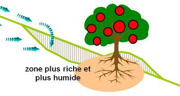 C’est le contraire. Dans un terrain en pente, on cherche avec ce système à retenir l’eau en freinant son ruissèlement.