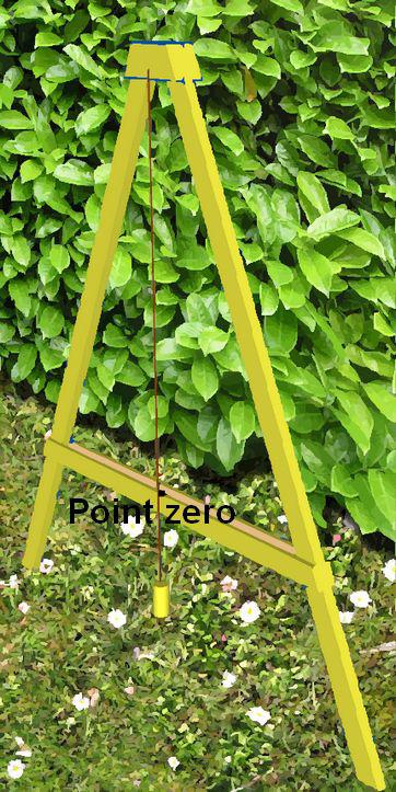 Posez un pied de votre équerre égyptienne au départ et posez l’autre pied de sorte que la corde du fil à plomb soit face au point zéro. Marquez l’emplacement avec un petit piquet, répétez l’opération en partant de ce piquet et ainsi de suite.