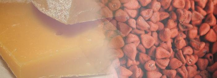 On extrait un fameux colorant connu de tous par son emploi l'E160b (ii) Norbixine de rocou. En effet, au départ il était surtout connu pour colorer la mimolette, mais avec le développement des produits alimentaires transformés on le trouve couramment dans les fromages, les glaces, le chorizo, le surimi, etc.