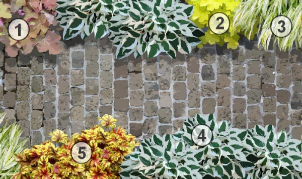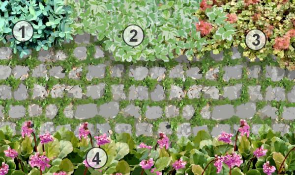 Privilégier les plantes vivaces à fleurs ou à feuillage décoratif ayant un intérêt décoratif tout au cours de l’année. Choisissez des plantes s’étalant ou avec des tiges retombantes ayant une végétation dense.