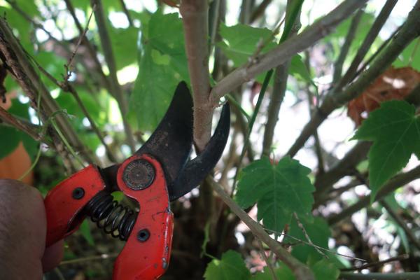 Choisissez une belle branche avec plusieurs départs de rameaux secondaires de sorte que sa suppression ne déséquilibre pas le port de votre arbuste.