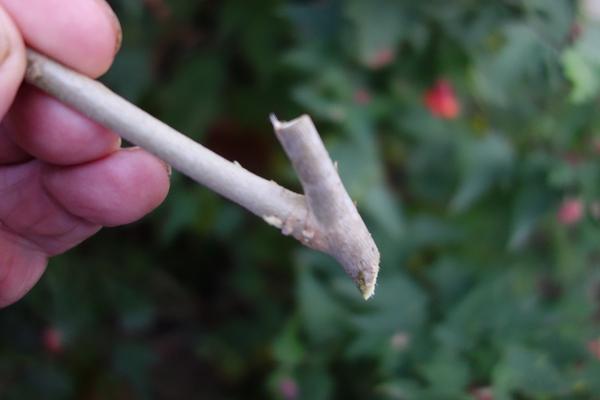 Coupez un morceau de rameau aoûté portant une brindille de l’année semi-aoûtée. Vous disposez ainsi de bouture à talon. De telles boutures d’abutilon sont immanquables.