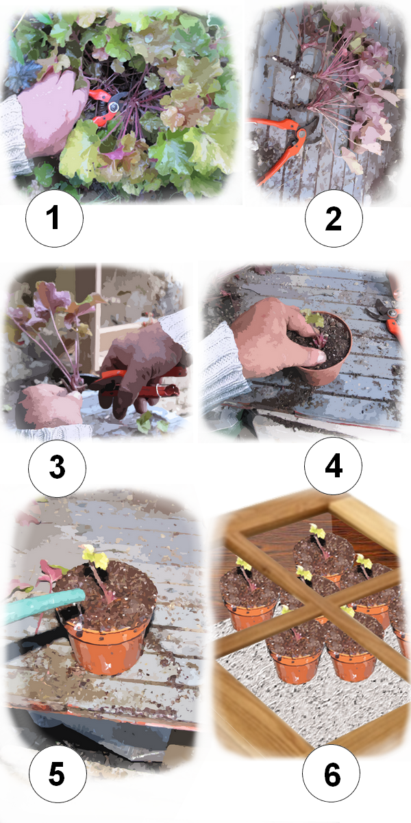 Arrosez aussitôt. Les boutures d'heuchères seront arrosées par la suite régulièrement, mais sans excès pour éviter la pourriture. 5