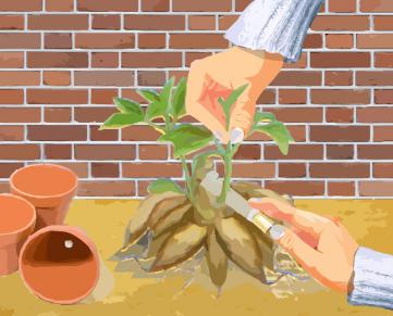 Rempotez alors chaque bouture dans un godet rempli d’un terreau de type géranium. Conservez vos godets sous serre jusqu’au début avril, puis mettez-les sous châssis froid afin d’endurcir vos Dahlias une semaine ou deux avant de les planter.