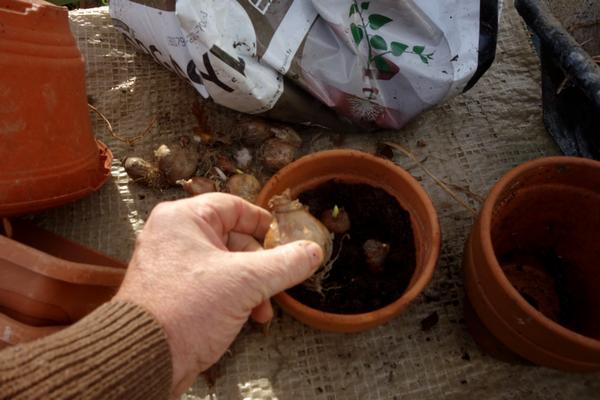 Le mélange doit être drainant, car les bulbes en pot détestent l’humidité stagnante et excessive l’hiver.