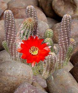 Appelé aussi cactus lobivia silvestri. Fleurs rouges apparaissant aprés l'hiver. Résiste à -17°