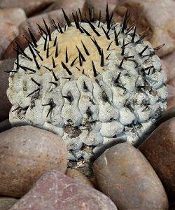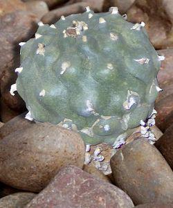 Curieux cactus globulaire sans aigillons. Son commerce est interdit car elle contient des alcaloïdes assimilés à une drogue.