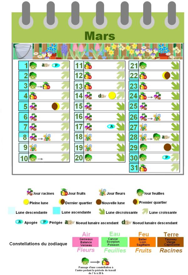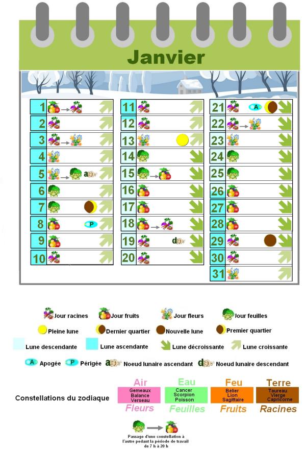 Découvrez le nouveau calendrier lunaire pour le jardinage biologique mois par mois pour l’année 2025 et les travaux à réaliser au jardin selon les différentes phases de la lune. Version PDF imprimable disponible.