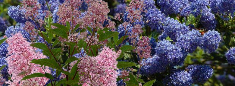 Les céanothes caducs s'épanouissent en été, dans des tons bleu clair ou rose.
