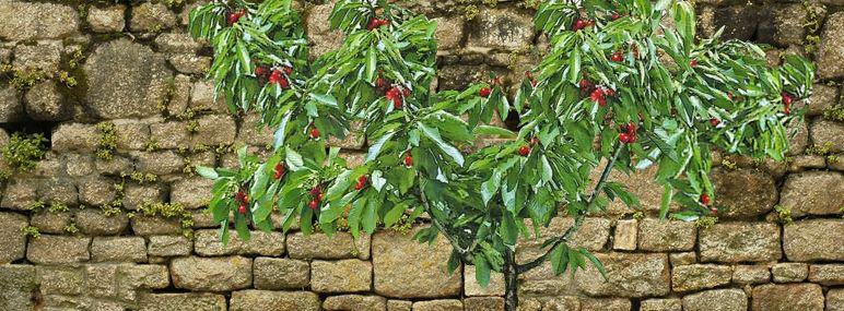 Installez un scion ramifié dès la base au pied du mur orienté à l’ouest ou nord et palissez les branches en éventail sur de petits tasseaux obliques fixées au mur. Vous pouvez laisser un espace libre au centre.