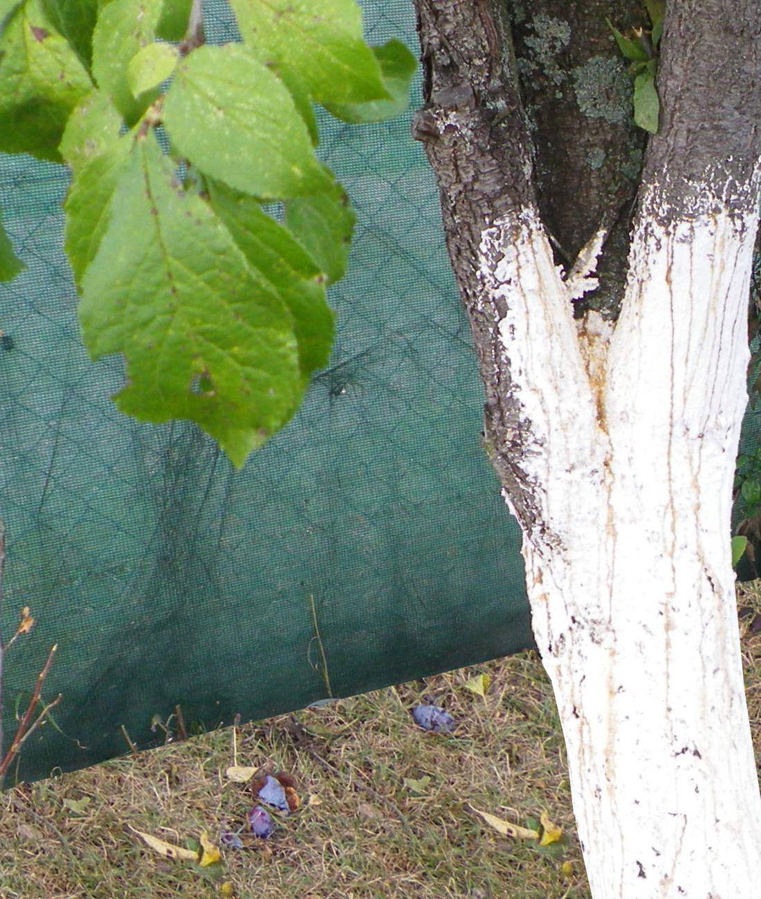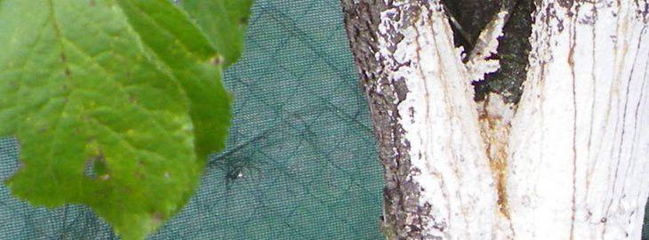 Le chaulage est un traitement préventif effectué en d'hiver qui consiste à badigeonner le tronc des arbres et le départ des branches charpentières après les avoir débarrassées des lichens, avec ce qu'on appelle du "lait de chaux".