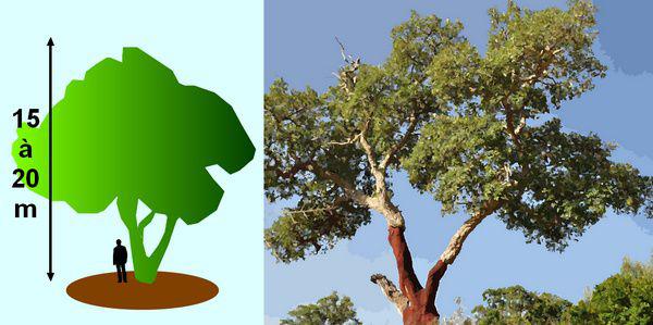 Le chêne-liège est un petit chêne puisqu’il ne s’élève généralement que jusqu’à une quinzaine de mètres de hauteur. Le tronc qui peut devenir très large est couvert d’une écorce striée de sillons profonds, productrice du liège. Son port est large, irrégulier, et s’élargit grandement si l’espace le lui permet. Son feuillage est semi-persistant. Les feuilles pointues à leur extrémité sont solides, dures et coriaces. Leur face supérieure est d’un vert sombre luisant, tandis que leur face inférieure est grisâtre. Elles peuvent rester sur l’arbre pendant deux à trois ans, les glands ne mûrissent que la seconde année. Le chêne-liège est originaire des régions méditerranéennes. Habitué au climat chaud, il demande l’exposition la plus protégée possible et craint les fortes gelées ; aussi, sa plantation ne peut-elle pas être pratiquée au nord de la Loire. Ce sont des arbres qui ne peuvent pas évoluer dans des terrains calcaires. On cultive principalement les chênes-lièges pour leur production de liège. C’est également un bel arbre d’ornement pour les jardins méditerranéens.