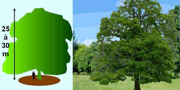 Ce chêne demande un terrain bien draine et peut atteindre 40 m de hauteur.