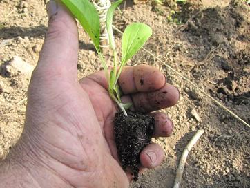 Deux semaines après la levée, plantez les minimottes de chou « Pak-Choï » en adoptant les mêmes distances de plantation que la précédente méthode.