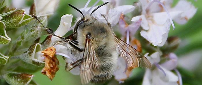 S’il fallait désigner la « chouchou » du jardin, ce serait assurément l’Anthophore plumeuse. D’abord parce que la solide abeille sauvage est une butineuse hors pair. Elle était là déjà fin février et, depuis, elle n’arrête jamais. Par tous les temps.