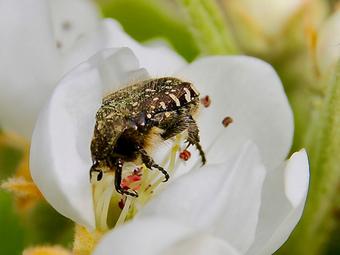 Comme toutes les Cétoines, il aime les fleurs. Hélas, il ne se contente pas du nectar. Il broute. Alors, là où il passe, il n’y aura pas de fruit. Rien d’inquiétant pour quelques individus isolés. Sinon, pas d’autre solution alors que le ramassage. Heureusement, il est facile à voir et à « cueillir » lorsqu’il est à table !