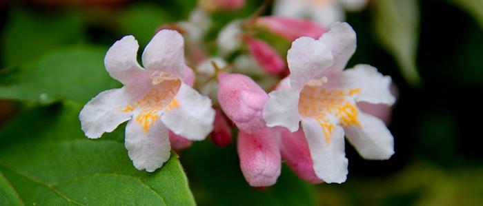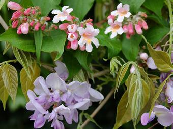 Il en vaut la peine ! Sur fond de feuillage vert foncé, ses grappes serrées sont réjouissantes. D’abord rouge vif, la multitude de boutons éclate bientôt en de foisonnantes guirlandes de petites fleurs blanches délicatement nuancées de rose. Les corolles à deux lèvres lobées s’ouvrent largement sur le tube nectarifère. Avec une subtile dentelle orangée sur les trois lobes de la lèvre inférieure. Pour guider les pollinisateurs.