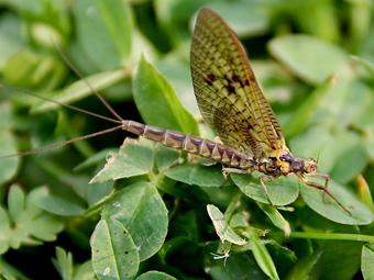 Son histoire est très comparable à celle du Sialis de la vase. En plus expéditif. Et le vol en plus. La Grande éphémère, alias la Grande mouche de mai, comme l’appellent les pêcheurs, n’abandonne en effet son état larvaire que pour l’ivresse des ballets aériens au cours desquels a lieu « la grande affaire » !