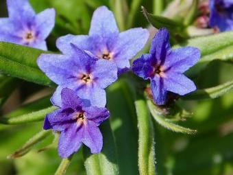 Nouvel envahisseur au pied des haies. Les souches du Grémil bleu pourpre viennent de se réveiller. Un peu comme la Stellaire holostée qu’il côtoie volontiers, ses rameaux rampants émettent de hautes tiges dressées, ponctuées d’étroites feuilles lancéolées.