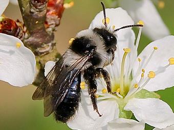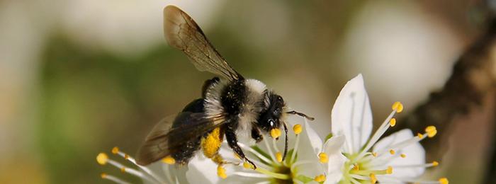 Vivent les abeilles sauvages ! En voici une parmi les plus actives. Du moins le petit Andrène cendré devient-il vite familier, aisément identifiable à l’abondante fourrure de son thorax. Un large bandeau noir entre deux bandes grises. Avec un toupet frontal assorti.