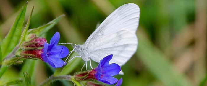 La Piéride de la moutarde affectionne les pieds de haie et les prés refermés du marais. Elle y butine notamment le Grémil pourpre bleu. En attendant la Moutarde noire qui ne devrait plus tarder à fleurir.