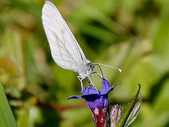 Le jardin n’a rien à craindre avec la Piéride du navet. Contrairement à ce que suggère son nom, elle n’installe pas ses chenilles au potager. Pas plus sur les navets que sur d’autres légumes. Elle préfère les crucifères sauvages comme l’Herbe à l’ail ou la Cardamine des prés.