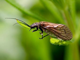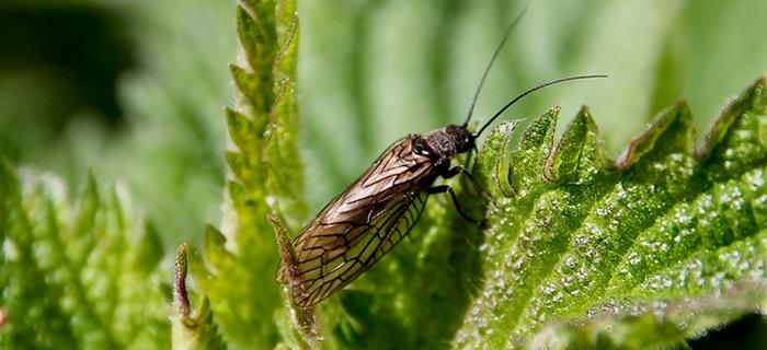 Il est comme prostré, ici sur le dossier d’une chaise du jardin, là sur une feuille d’ortie. À peine sorti de la Sèvre toute proche et c’est déjà presque la fin pour le Sialis de la vase. Larve encore voilà peu, il s’est métamorphosé en ce bel insecte aux ailes magnifiques. Disposées en toiture. Comme une verrière fumée aux allures Art nouveau.
