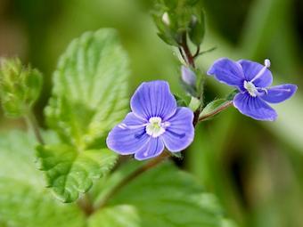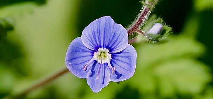 Ses cousines n’avaient pas attendu le printemps pour s’aventurer au jardin. La « géante » de la tribu vient de les rejoindre. À vrai dire, la Véronique petit-chêne ne se hisse guère plus haut que la Véronique de Perse et la Véronique à feuille de lierre. Mais ses fleurs, bleu clair, parfois violacé, s’épanouissent plus généreusement.