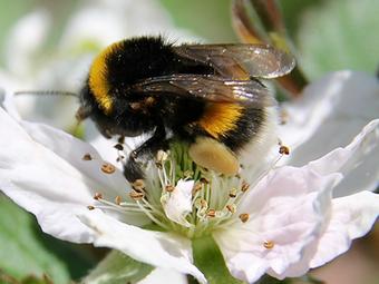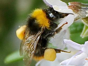 Presque aussi menu que le Bourdon des prés, il adopte sans complexe la livrée de l’imposant Bourdon terrestre. Sur fond noir, son collier jaune orangé fait ainsi écho à la large bande rousse de l’abdomen. Sans oublier le « cul blanc » naturellement.