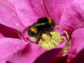 Le temps est déjà loin où il n’avait que le romarin et quelques fleurs sauvages à se mettre sous la trompe. Sur le pont dès la sortie de l’hiver, le petit Bourdon des saussaies voit enfin sa ténacité récompensée. Voilà venu le temps de la tournée des grands-ducs ! Il passe ainsi allègrement des trompettes du Weigelia aux larges corolles de la Clématite, en passant par les pétales chiffonnés du Mûrier et les éclatantes grappes jaune d’or du Cassia.