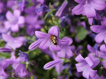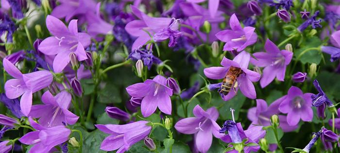 Abeilles, syrphes et bourdons s’en donnent à cœur joie dans ce foisonnement bleu rosé. Et qu’importe si les petites clochettes fanent vite une fois fécondées : d’innombrables petits boutons violacés sont déjà prêts à prendre le relais.