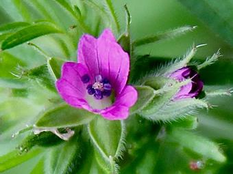 Heureusement, il peut prendre appui sur les hautes herbes des prairies et des bords du halage ! Ses tiges rameuses peuvent ainsi hisser tant bien que mal leurs inflorescences presque au-dessus de la mêlée. Le Géranium découpé est un modeste. Ses petites fleurs s’épanouissent deux à deux et ne durent guère. Mais elles se renouvellent constamment.