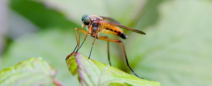 Avec des ailes fortement nervurées, parfaitement transparentes, le Leptis pointillé n’est guère adepte des longues pérégrinations. Mais il a le vol vif et précis. Toujours prêt à fondre sur les minuscules diptères volant à proximité. Voilà donc un précieux auxiliaire au potager. Les « mineuses » du poireau et de la carotte, comme celles de l’oseille ou de l’oignon, n’ont qu’à bien se tenir !