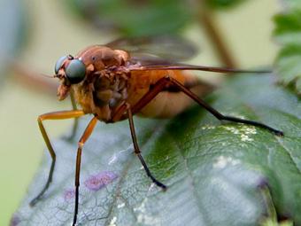 Dressé sur ses hautes pattes, le Leptis pointillé (Rhagio tringarius) est ici à l’affût. Au bord d’une haie ou sur les légumes du jardin, cette petite mouche orangée apprécie les postes d’observation ensoleillés.