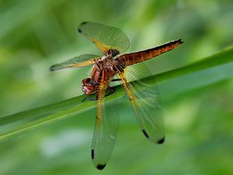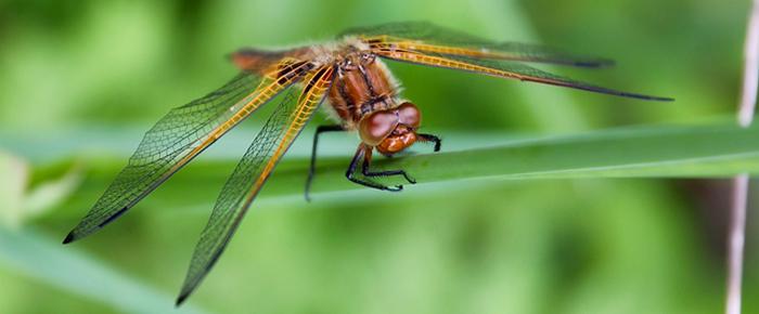 Comme le Gomphe à pattes noires, la Libellule fauve est une carnassière tranquille. Inlassablement à l’affût, elle attend qu’un insecte passe à sa portée. Au bord de la Sèvre ou d’un fossé, mais aussi au jardin. Les ailes rabattues, on la sent prête à bondir. Sans doute est-elle moins transie qu’on l’imagine !