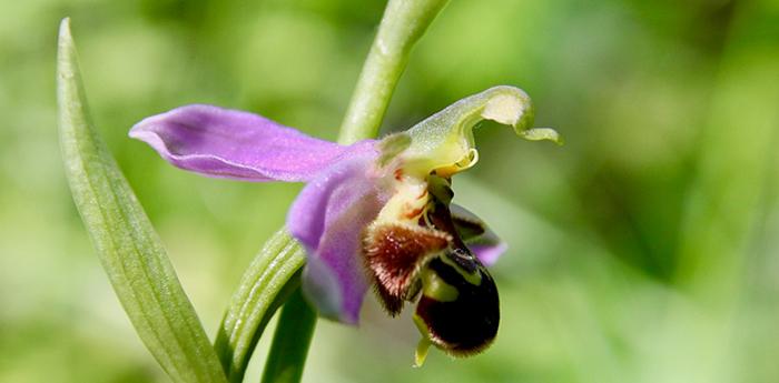 Elle n’a sans doute pas la prestance de l’Orchis incarnat. Voilà pourtant, une orchidée pour le moins séduisante. Et singulière. Car, si comme son nom l’indique, l’Ophrys abeille attire les butineurs, ce n’est pas vraiment pour butiner !