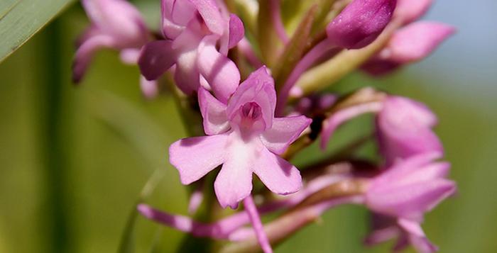 Légère et aérienne, la colonie voisine ici avec l’Orchis incarnat dans l’ancienne prairie humide, devenue peupleraie, à deux pas du jardin. Rose vif veiné de pourpre, ses ravissantes corolles se signalent de loin. Même si leurs cinq pétales se réduisent à quelques fines lanières.
