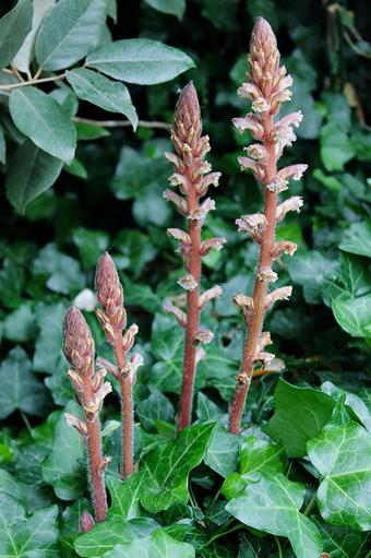 De hautes et solides tiges poilues, sans feuille et donc sans chlorophylle : la sournoise puise sa nourriture grâce à des suçoirs en prise directe sur les racines du lierre. Extérieurement, elle se résume à ses épis floraux d’allure un peu terne, mais qui gagnent à être vus d’un peu plus près.