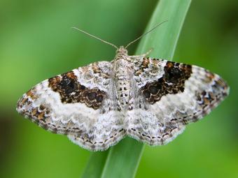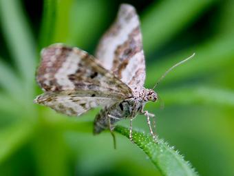 C’est plutôt un papillon nocturne. Mais l’Alternée, alias la Phalène du gaillet (Epirrhoe alternata) vadrouille encore au petit matin dans les fourrés et le bosquet proches du jardin. Peu farouche, elle se laisse facilement approcher. Cela en vaut la peine. Car son rapide vol grisâtre ne laisse rien deviner de ses élégants atours.