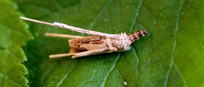 Dans tous les cas, elle est plutôt trapue, avec de gros yeux globuleux, des ailes légèrement veinées de noir et de courtes antennes plumeuses.