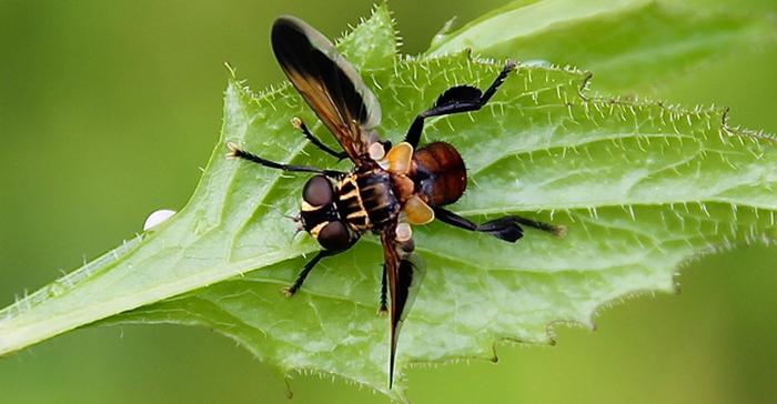 Pas l’air sympathique le Tachina magnicornis ? Allons donc ! Songez qu’on l’appelle aussi la Mouche des chenilles… Elle n’est pas la seule certes. Mais elle a une spécialité qui a rend bigrement utile au jardin : les Noctuelles !