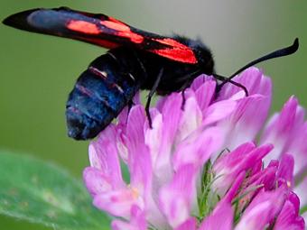 Quant aux oiseaux, il semble que la livrée noire bleutée, marquée de cinq taches rouge sang, suffit à la dissuasion. Attention, mauvais goût ! Et toxique. Cela dit, il faut bien une première expérience malheureuse pour s’en rendre compte… Dans le farniente comme dans le butinage, ça n’a pas l’air de l’inquiéter.