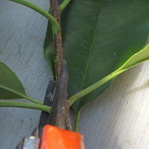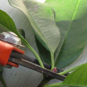 Supprimez les feuilles du bas pour ne conserver que celles du haut de la bouture._voir image_