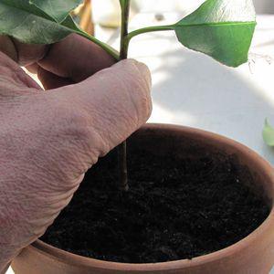 À l'aide d'un crayon, plantez la ou les boutures dans un pot à mi-hauteur soit 10cm minimum en terre. Tassez bien au pied avec le bout des doigts.